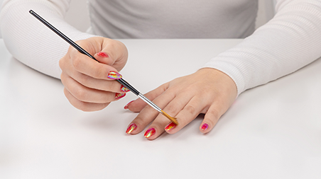 Then immediately use the included applicator brush to pick up the flakes and press them onto the nail surface.
